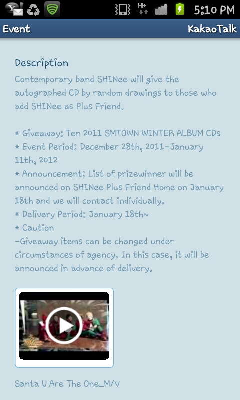 A Kakao Talk-on, most mr be lehet jellni a SHINee-t bartknt, s a fik alrt CD-t adnak brmilyen rajzrt, amit be lehet kldeni, de csak akkor, ha hozzadod ket plus friend-knt. Credit: SMTOWN
