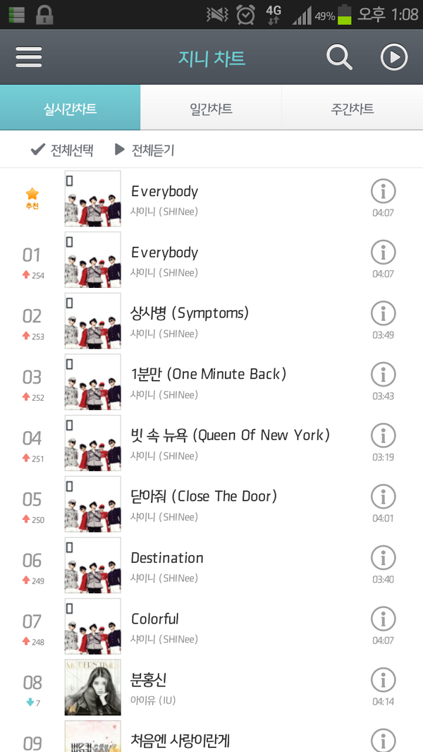 A SHINee hivatalosan is megjelentette az 5. minialbumt, az 'Everybodyt' a mai napon, s ahogy az vrhat volt, a szmok az albumrl azonnal elfoglaltk helyeiket a listk lmeznyben!